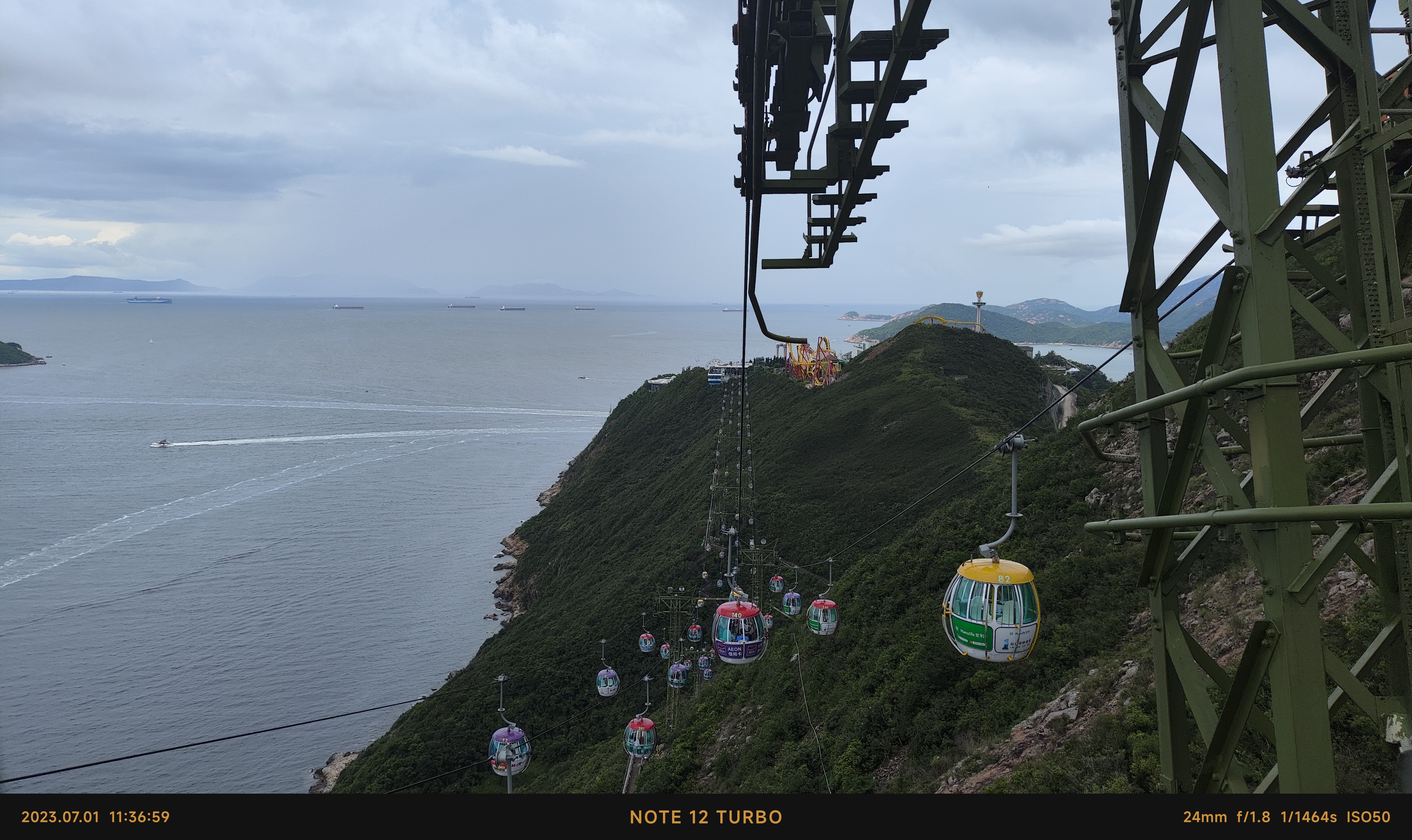 钻过了长长的隧道后,海洋公园就呈现在了我们面前。首先映入眼帘的就是那四排长长的缆车了,我之前坐过青城山的缆车,还有白云山的缆车,但既能看到山又能看到海的缆车这还是第一次坐。但是走到售票处跟前,我们就被$498的票价给吓死了。慌忙打开携程,票价¥327,想着好不容易来了,就买了吧。于是入了园。