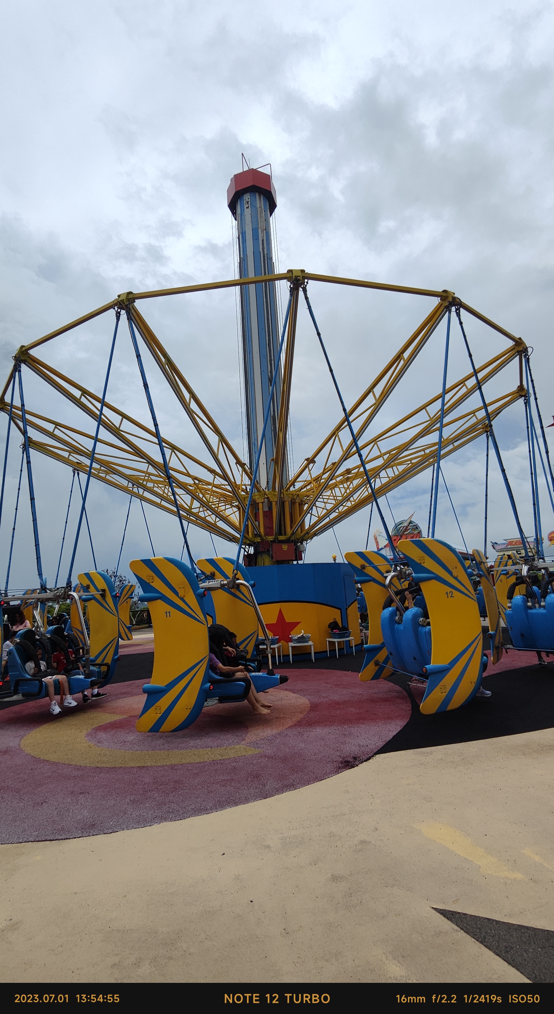 紧接着,我去尝试了360°的大摆锤「是的situ因为害怕所以没有去」,然后吃了$80的一碗面,吃完了我们排队了半个小时玩了下这个不那么刺激的项目: