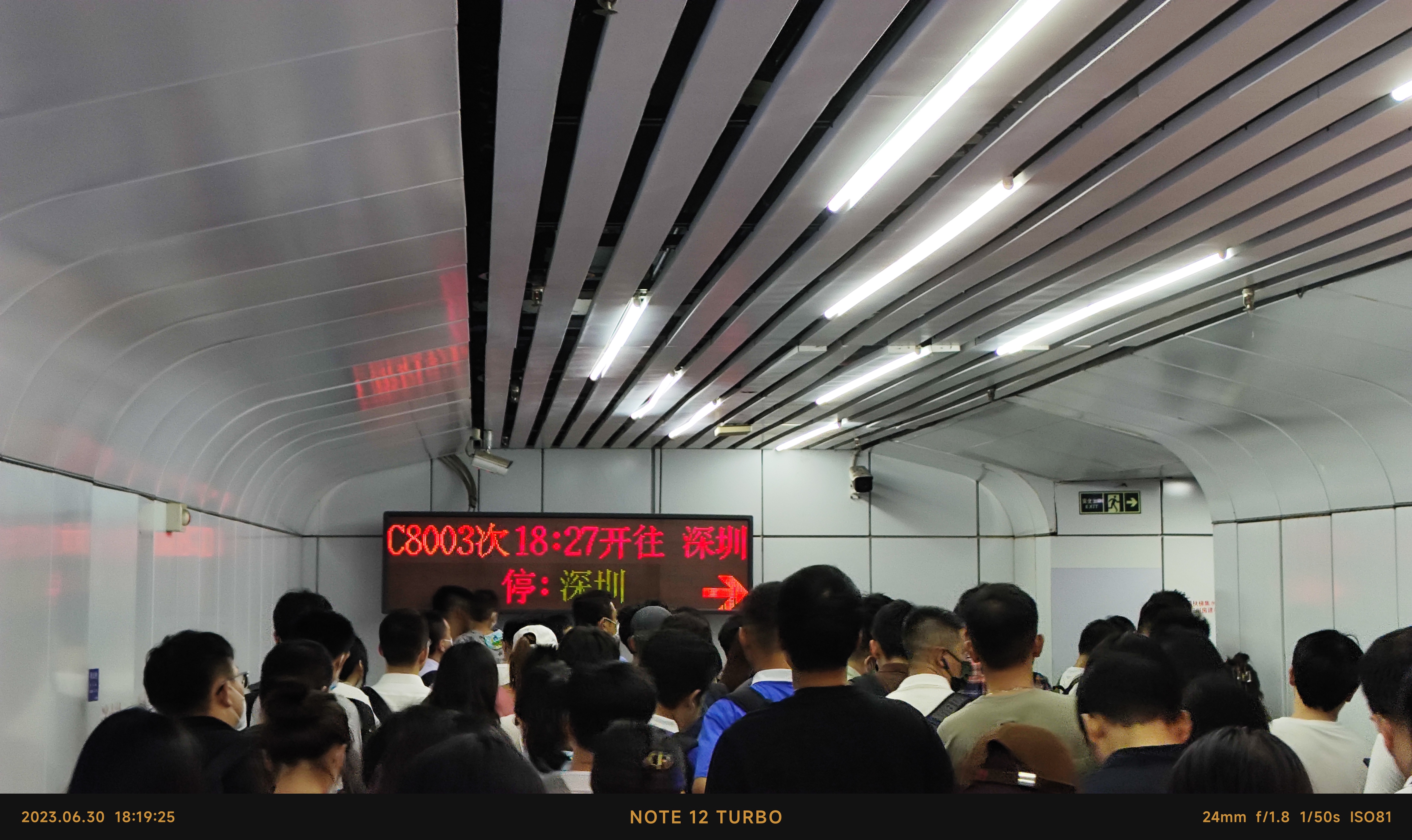 此时距离开车只有十分钟了,我只好插队到队头,一边说着“抱歉,我的车马上要开了”一边往里面挤,还好检票口离得近,保安一直拿着喇叭喊:“这趟车直达深圳,中间不停!”