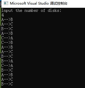 这三个步骤就是最开始move(4,A,B,C)函数所做的事情,因为我们已经证明move(3,A,C,B)和move(3,B,A,C)是可以详细列出移动3个盘子时每步移动的动作的,而中间的A—>C是一步显而易见的移动动作,所以可以确定move(4,A,B,C)是能列出每步的移动动作的。